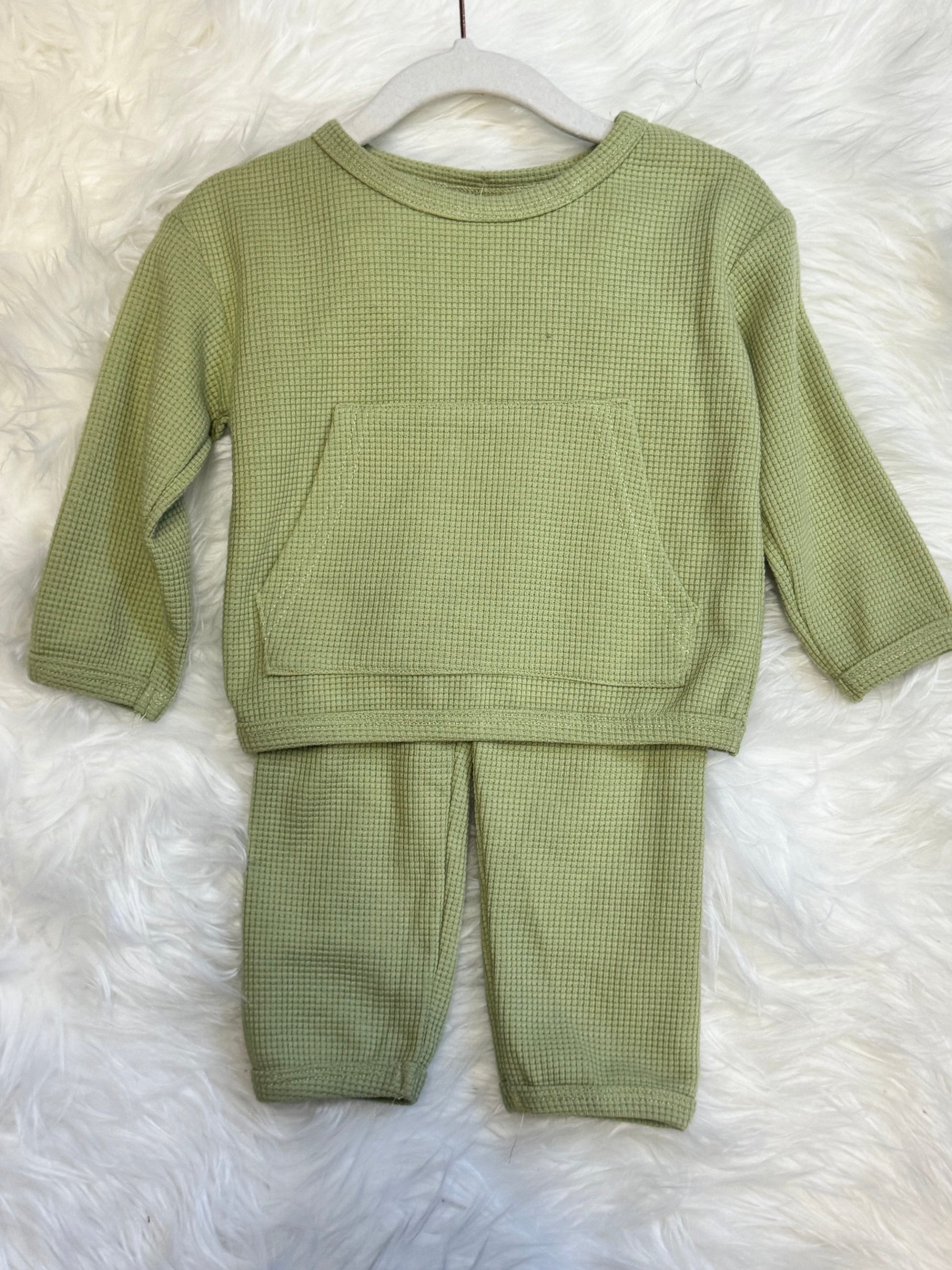 The Snuggle Set is made for playdates, naps, and everything in between. Crafted from soft waffle-knit fabric, this matching set features a relaxed-fit top with a front pocket and coordinating pants for ultimate comfort and style. Lightweight, breathable, and oh-so-cozy.